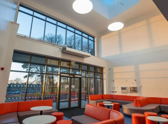 The new teaching facility was designed to meet the growing demand of the College’s academic programme while serving as a focal point on campus. Emphasising environmental sustainability, the curved building relates to the main school by shared architectural palette.